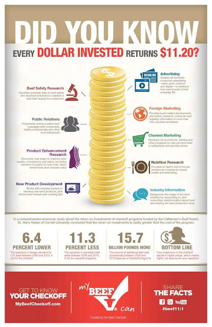Harry was one of my professors in graduate school at Cornell in the 1990s, and he is a leading economist in the evaluation of generic advertising effects on food consumption. This recent infographic from the beef checkoff program highlights his work (click for full size).